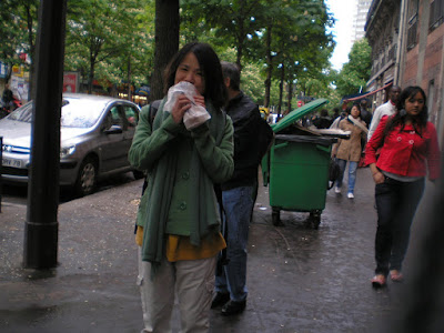 My goal was to ride the metro and to eat the famous Báhn mì (not bakmi), Vietnamese baguette. My brother just kept on telling me how he loves it since he visited China town in Paris for the first time. And I have to say, I heart it too.^^ I'm Dutch so I also heart mayonaise and guess what they contain mayonaise. Yum, yum, me so like it.=) I ate one with sliced vietnamese saucage and ham. You can get them with different kinds of meat, even vegetarian. I'm going to try to make them when I'm back in Leeuwarden.