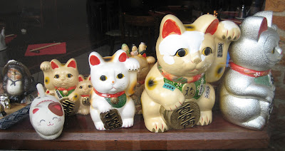 Ik ga linea recta naar het avondeten die zaterdag. Mijn moeder zei altijd, "In de randstad is 'chinees' altijd beter dan bij ons in Limburg." Maastricht heeft ook een lekkere Dim Sum restaurant maar dat terzijde. Sushi eet ik als snack maar ik kon het niet laten om een foto van de maneki nekos te maken van sushi restaurant Suzuran.