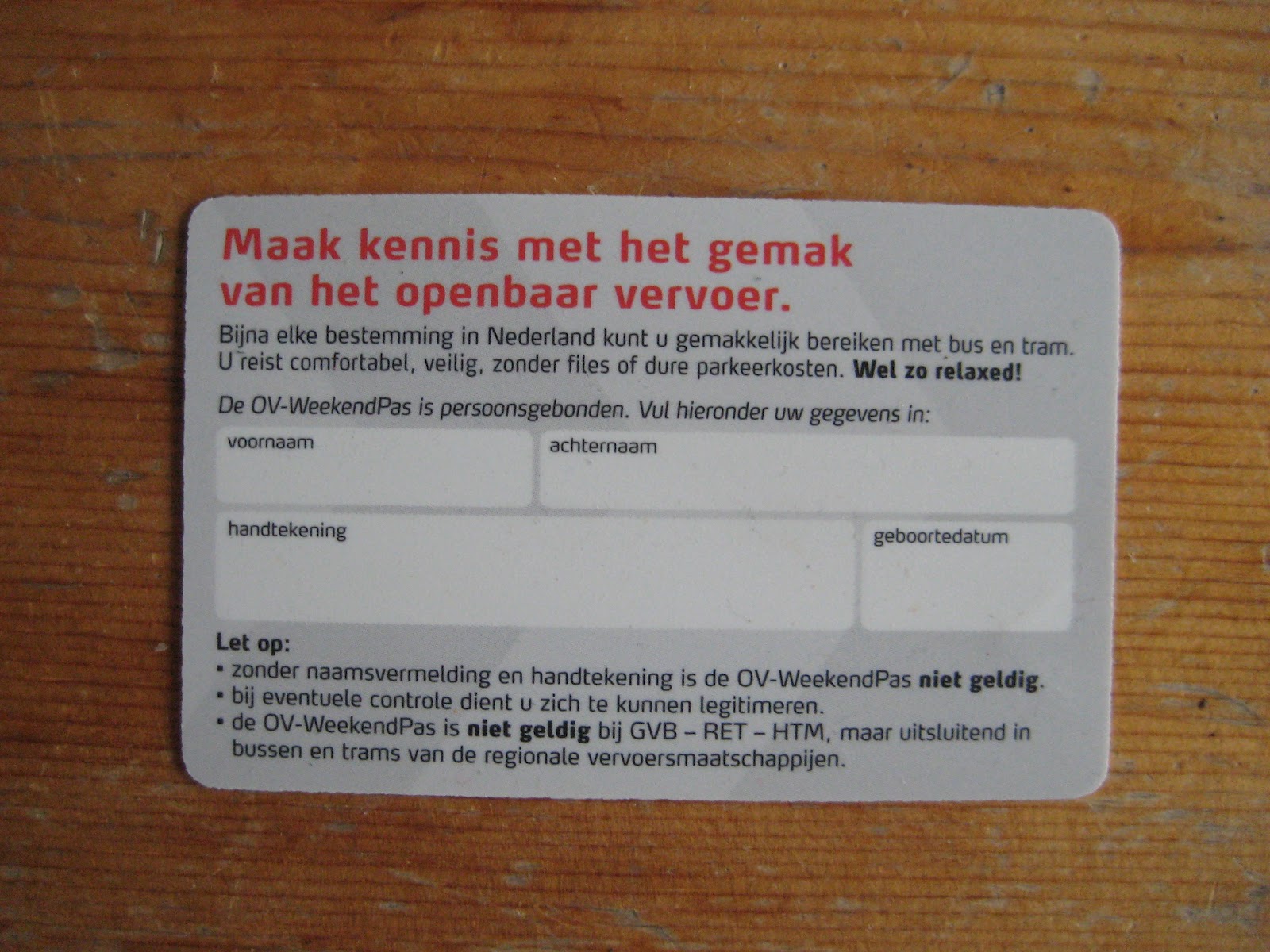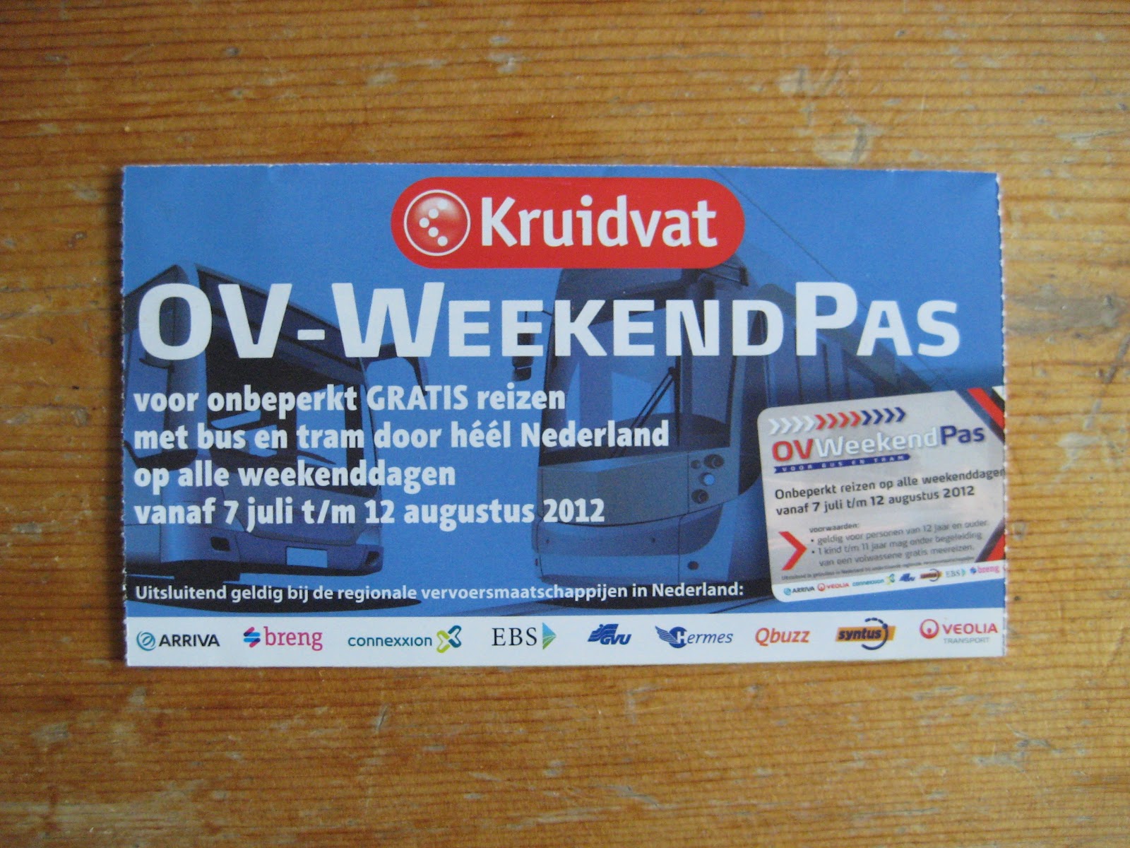 Inmiddels is ook de zomerzwerfkaart uitgestorven. Hiermee kon men een dag reizen in de bus, tram, metro en een beperkt aantal treinen voor een aantal Euros. Daarvoor is de ov-weekendpas van de Kruidvat in de plaats gekomen. Hiermee kan men op weekenddagen van 7 juli tot en met 12 augustus onbeperkt met de bus en de tram reizen voor maar € 9,95. De pas is helaas niet geldig bij de RET, HTM en GVB. Hij is ook niet geldig op bustrajecten naar en in het buitenland. Te koop bij de Kruidvat tot 24 juni.