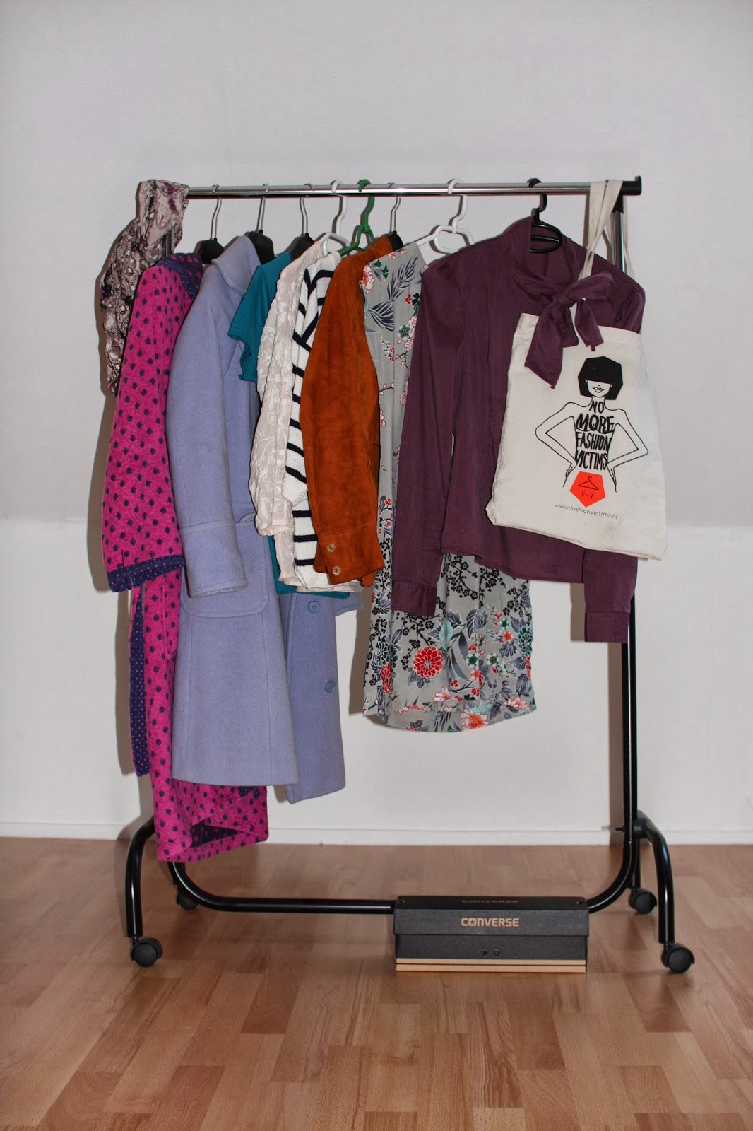 Ik heb kleding gekregen, duurzaam kleding gekocht en tweedehandse kleding gekocht. De Converse schoenen waren een uitschieter, deze heb ik gekocht zonder erbij na te denken. Gelukkig hadden ze een duurzaamheidslabel C (veegt zweetdruppel van voorhoofd af). Verder mist er nog een sjaal (leider kaput gemacht), zelfgebreide sokken van oma (zaten tijdens het maken van de foto in de wasmachine) en een Yoda-muts ... I can explain this, ik had hem gekregen voor mijn verjaardag. Ik doe hem alleen op als het heel, heel erg donker is en ik op de fiets zit. Dan ben ik een schim die snel voorbij racet. Het houdt mijn hoofd wel warm, punt uit.